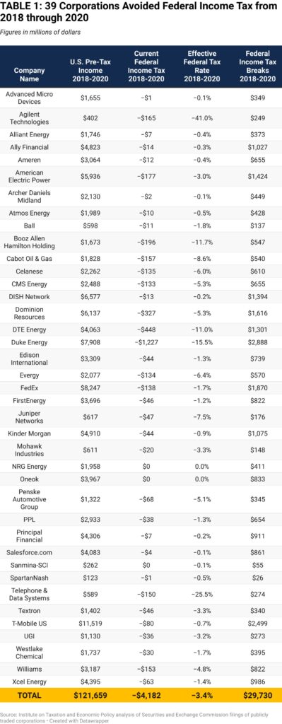 73 major corporations paid just 5.3% federal tax rate between 2018 and 2020