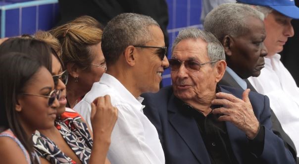 [Photo at top: Obama and Raúl Castro at baseball game in Havana on March 23. Others are, from left, Sasha and Michelle Obama; Esteban Lazo, head of the National Assembly; Vice President Miguel Díaz-Canel.]