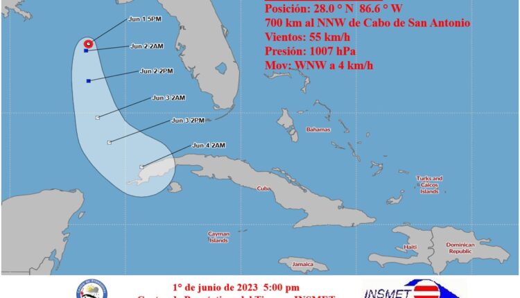 A las 5 de la tarde, su centro fue ubicado en los 28.0 grados de latitud norte y los 86.6 grados de longitud Oeste, posición situada a unos 615 kilómetros al noreste de Cayo Hueso, Estados Unidos y a 700 kilómetros al norte-noroeste de cabo San Antonio, Pinar del Río.