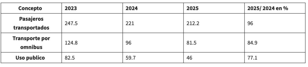 Some of the sensitive issues for the population include both food and transportation. In the latter case, various factors contribute, including the low availability of transport options due to deterioration and shortages of basic essentials such as buses, tires, batteries, etc. This has resulted in a decrease in the number of passengers transported, with buses carrying 14 million fewer passengers.