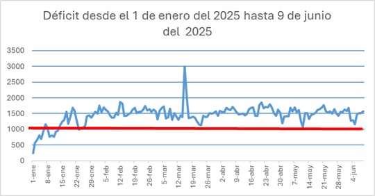 It is nothing new that, so far in 2025, with notable exceptions, the electricity generation deficit has consistently remained above 1,000 megawatts. This indicates a critically serious situation that affects society at large, with provinces and municipalities facing over 20 consecutive hours of blackouts each day.
