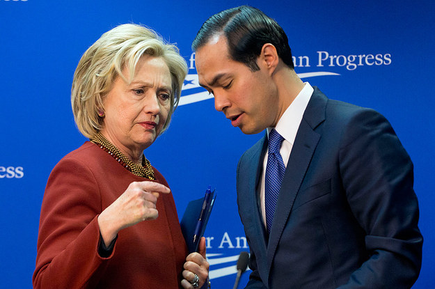 [Photo at top of Hillary Clinton with potential running mate Julián Castro.]