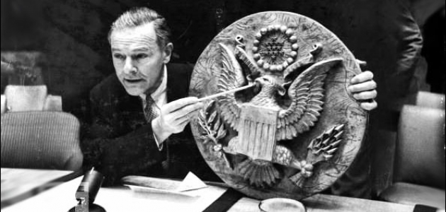 A well-remembered example of electronic surveillance occurred in 1960, when Henry Cabot Lodge, U.S. delegate to the United Nations, displayed a carved wooden replica of the Great Seal of the United States that the Soviets had presented as a gift in 1952 and had hung in the U.S. Embassy in Moscow for six years.