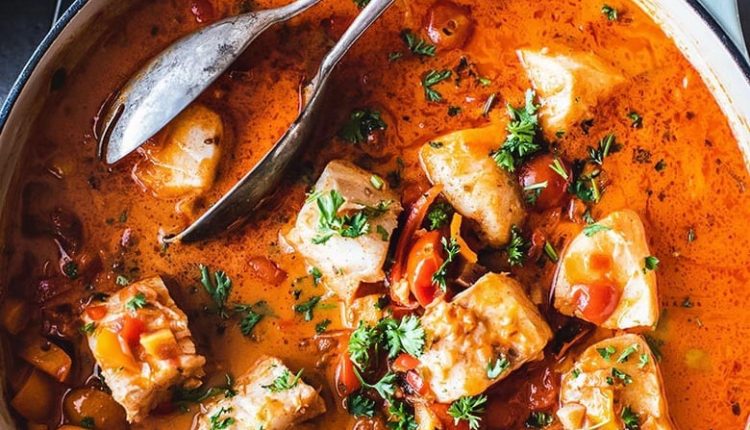 La moqueca de peixe es un plato tradicional de Brasil cuya procedencia se disputan dos regiones: Bahía y Espíritu Santo. Elaborada con frutos del mar, he usado solo pescado, pero se pueden añadir camarones, langostinos, etc. Entre sus ingredientes se encuentra el aceite de palma, pero puede sustituirlo por aceite de oliva.