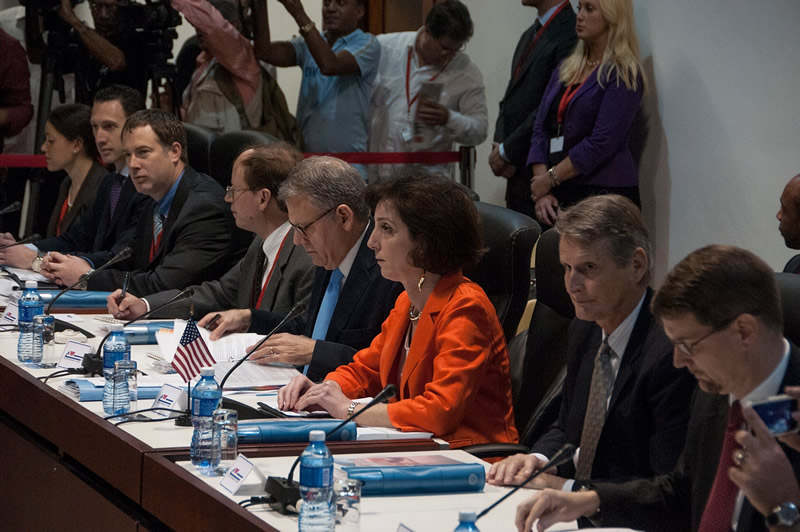 On the Cuban side, Josefina Vidal; on the U.S. side, Roberta Jacobson, both with their respective team of aides and assistants.