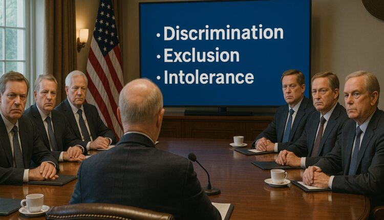 “Welcome to the Department of Homeland Purity,” he says. “Our mission is simple: ensure that government services are delivered to some people, some of the time.” He slides me an application stamped with the DEI seal: Discrimination, Exclusion, Intolerance.