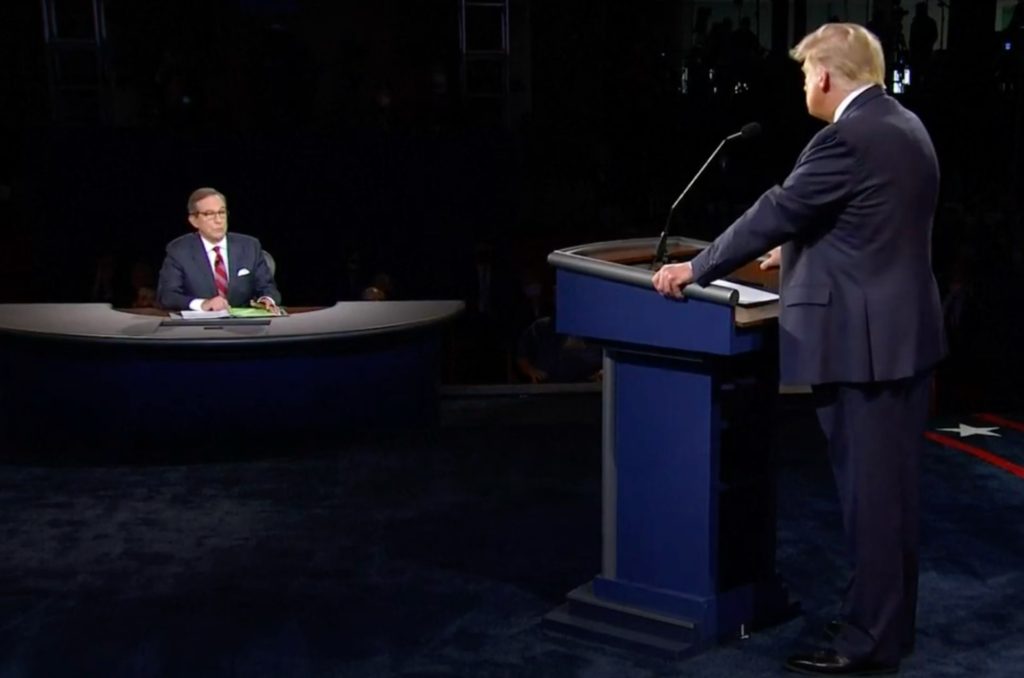 A hulking Trump, the perfect example of the ugly American, trying to bully a man whose reason for being attacked were his attempts at answering simple questions from Wallace. In fact, not only did he try his ruffian act on Biden, but he went after the debate moderator himself constantly interrupting, trying unsuccessfully to control the discussion.