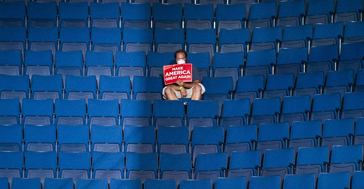 The alleged President of the United States, come to address an adoring citizenry, then confronted an astonishing vision. The outdoor bleachers were empty. Likewise the indoor cheap seats. Pandemic social spacing was no problem. Face masks were moot. Everyone in the arena had room to breathe.