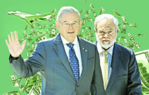 Menendez is facing charges that he sold his U.S. Senate office to a Palm Beach, Fla., eye doctor, his co-defendant Salomon Melgen, for bribes in the form of private jets stocked with Menendez’s favorite beverages, a private villa at one of the lushest resorts in the Caribbean, and a Paris hotel suite for which Melgen spent 650,000 American Express points.